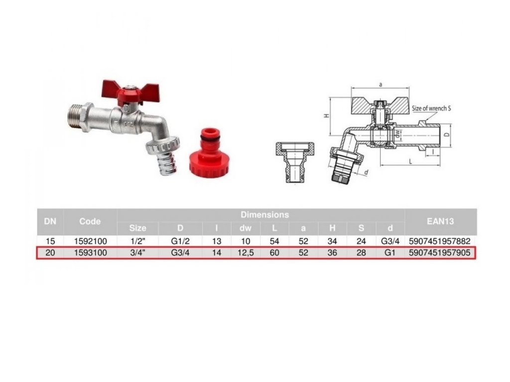 Rozmery: DN20, 3/4".