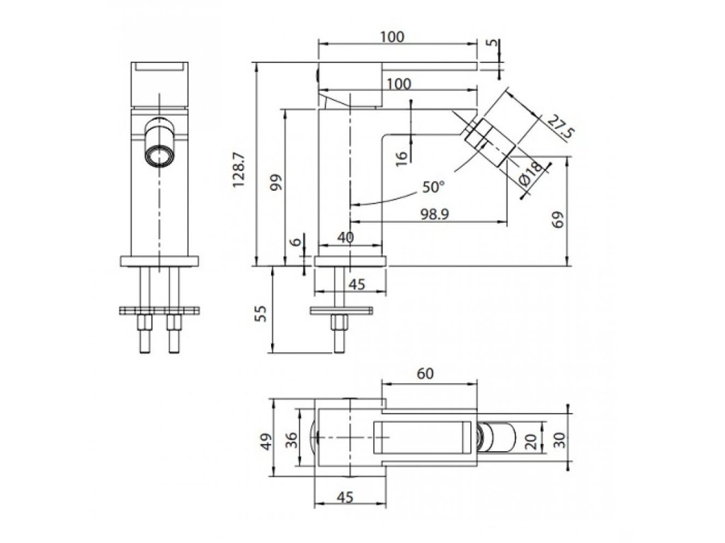 Páková bidetová stojanková vodovodná batéria s odtokovou garnitúrou.