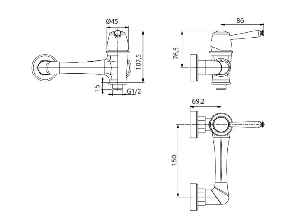 VIP páková sprchová stenová vodovodná batéria, bez sprchového príslušenstva.