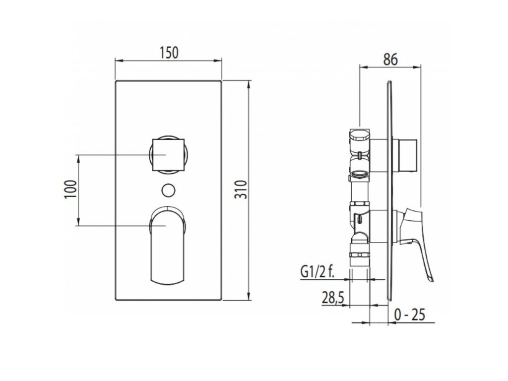 Páková sprchová podomietková vodovodná batéria pre 3 odberné miesta. Obsahom balenia je podomietková aj nadomietková čast batérie.Batéria je vybavená kvalitnou kartušou priemeru 35mm.