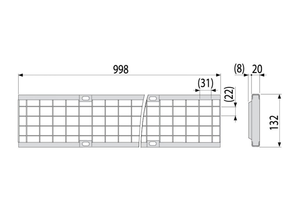 Pozinkovaný mriežkový rošt – fixovaný v žľabe pomocou štyroch kusov nerezových skrutiek, veľkosť ôk 22×31 mm