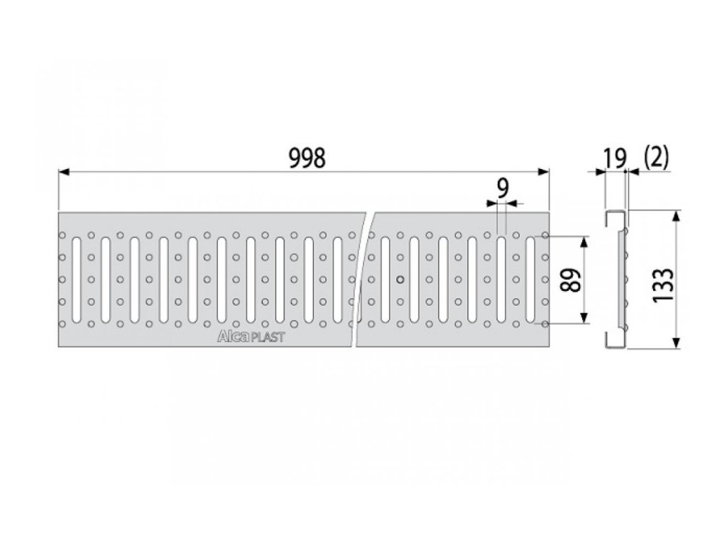 Pozinkovaný rošt s „C" profilom – fixovaný v žľabe pomocou dvoch plastových zámkov, šírka vtokovej štrbiny 9 mm