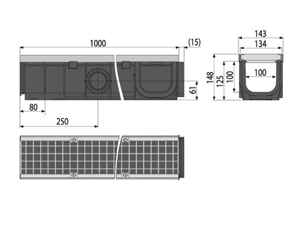 Vonkajší žľab 100mm s kovovým rámom a pozinkovaným roštom C250