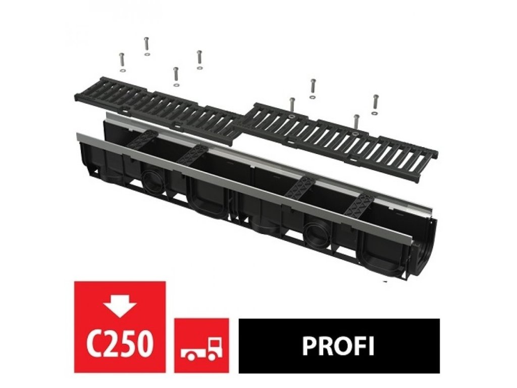 Vonkajší žlab PROFI s kovovým rámom a liatinovým roštom C250
