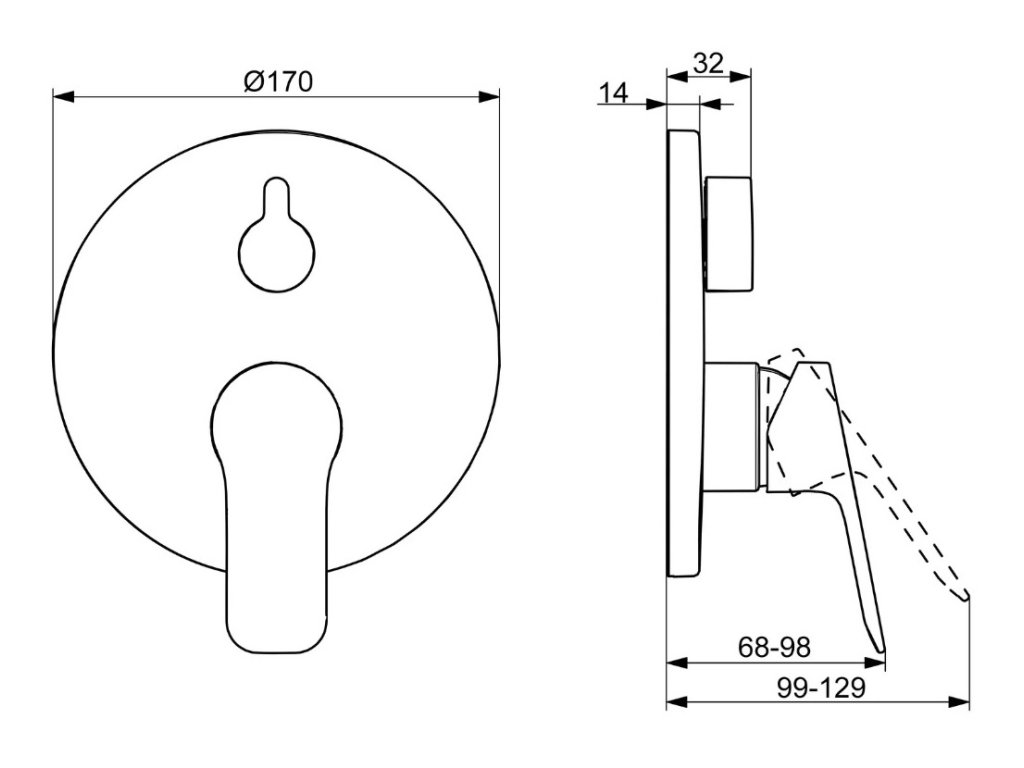 HANSABASIC - sprchová a vaňová podomietková batéria pre dve odberné miesto, s okrúhlou rozetou.
