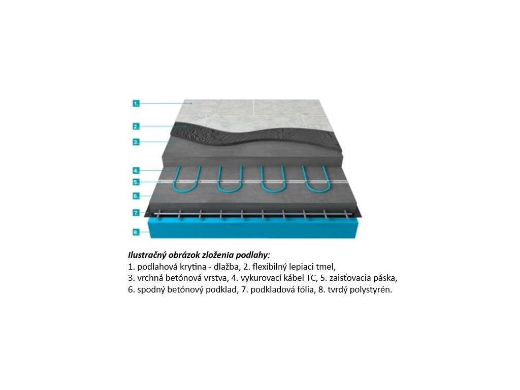 Vykurovacie káble majú príkon 10 W na meter káblu. Používajú sa pre mokrú montáž zaliatím do betónovej zmesi. Pri tejto skladbe podlahy je dosiahnutý takzvaný "akumulačný ohrev“.