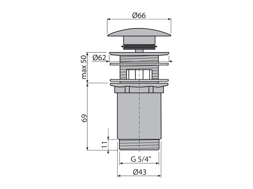 Výpusť CLICK/CLACK pre umývadlá s prepadom 5/4“veľká zátka, zlatý lesk