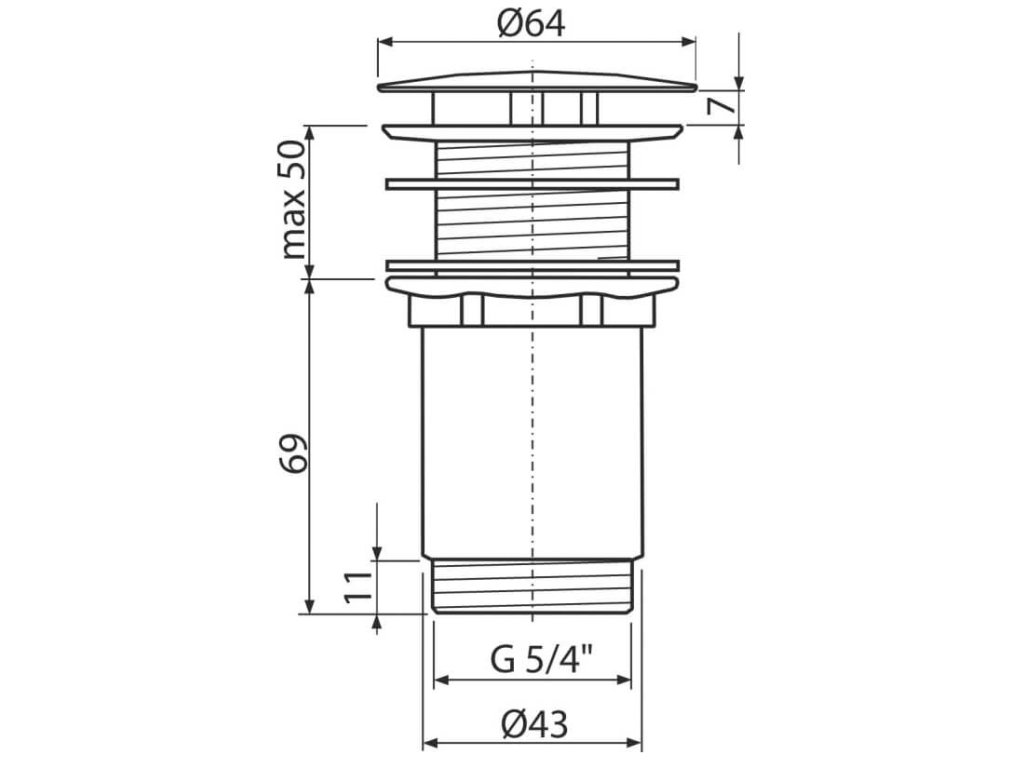 Výpusť pre umývadlá bez prepadu 5/4", veľká zátka, biely kov