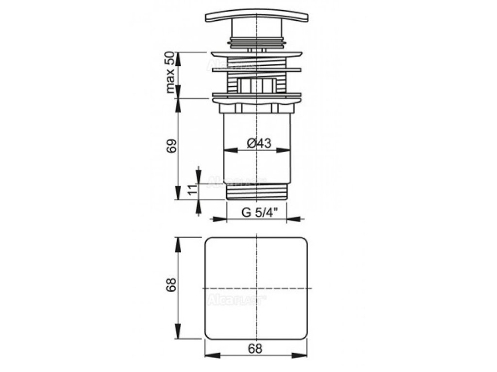 Umývadlová výpusť CLICK/CLACK 5/4" celokovová, hranatá zátka, chróm