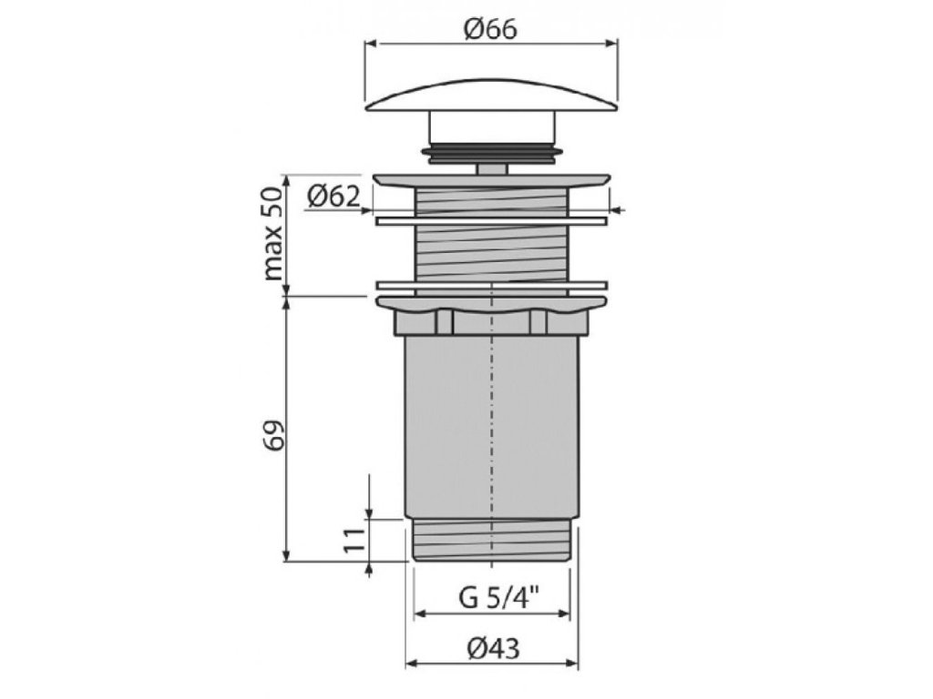 Umývadlová výpusť CLICK/CLACK 5/4" bez prepadu, veľká zátka, biely kov