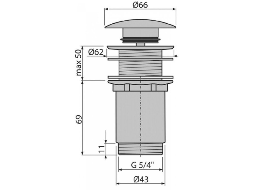 Výpusť umývadlová CLICK/CLACK 5/4" celokovová bez prepadu, velká zátka, pre plastové a sklenené umývadláPoužitie: