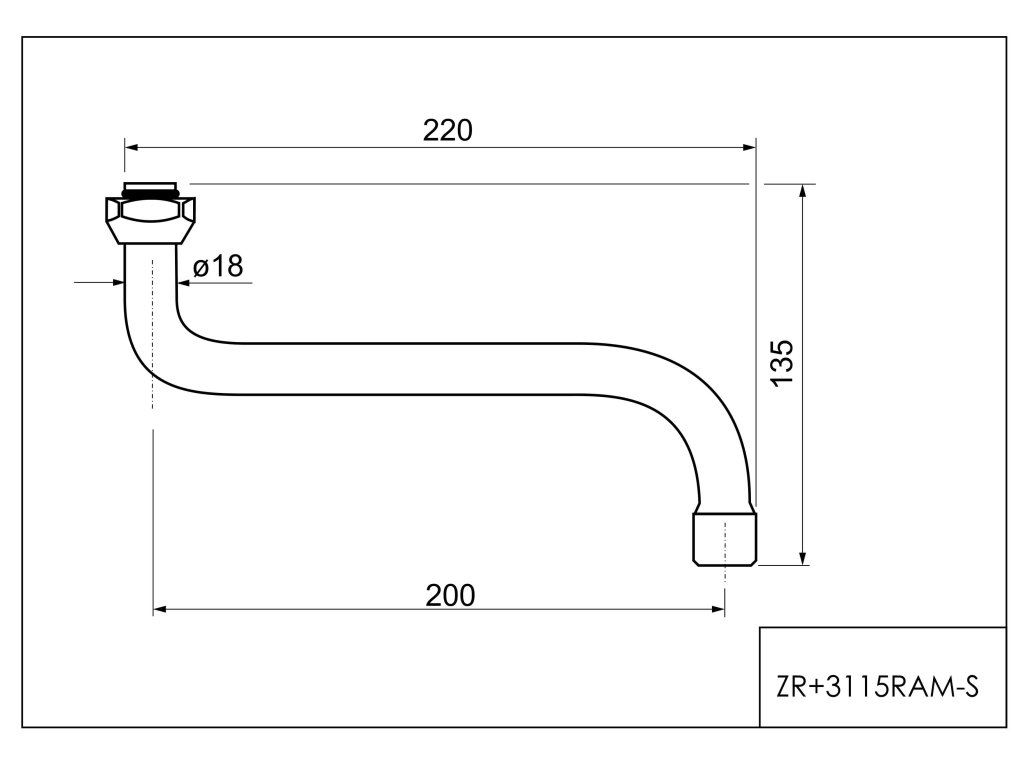 Náhradné výtokové ramienko pre stenové batérie ZORA "S" výtok 200 mm, chróm.