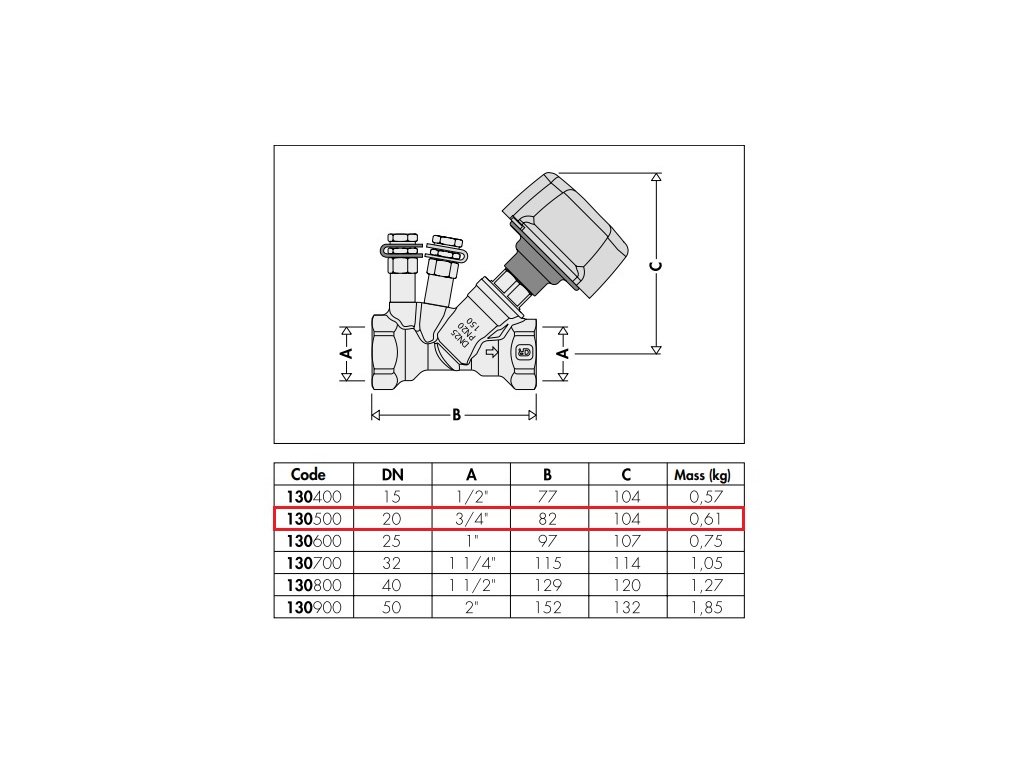 Vyvažovací ventil pre hydraulické obvody, 3/4"