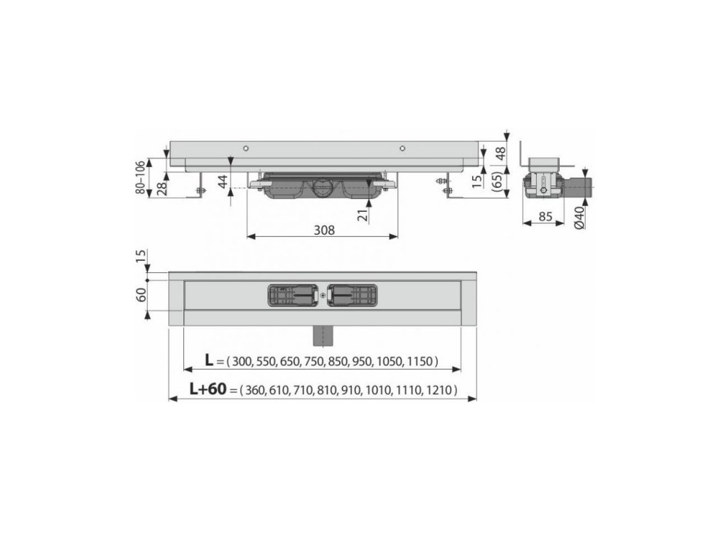 Sprchový žľab WALL LOW, okraj pre plný rošt, pevný golier - 300mm