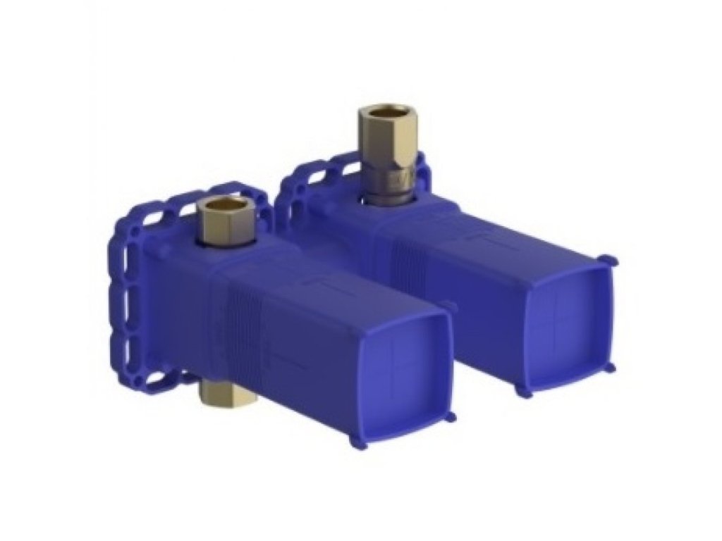 Základné podomietkové teleso pre sprchové a vaňové batérie, osadené kvalitnou keramickou kartušou s o 40 mm pre ovládanie teploty a prietoku vody.