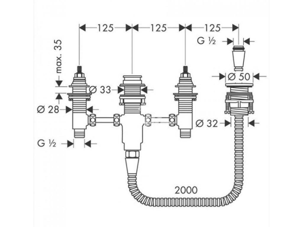 Základné montážne teleso pre 4-otvorové batérie na okraj vane