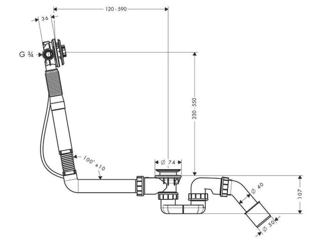 Odtoková a prepadová súprava na špeciálne vane EXAFILL S